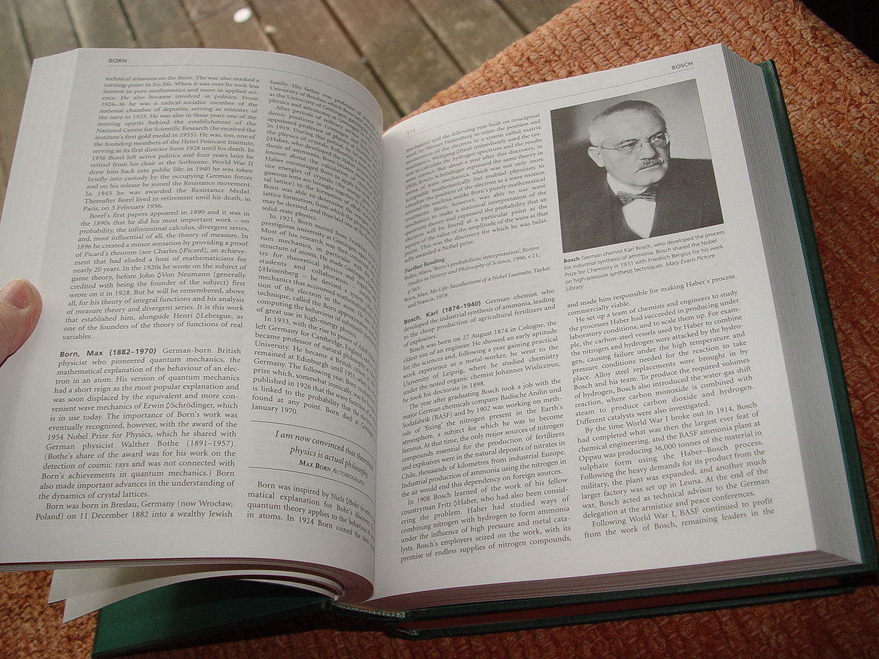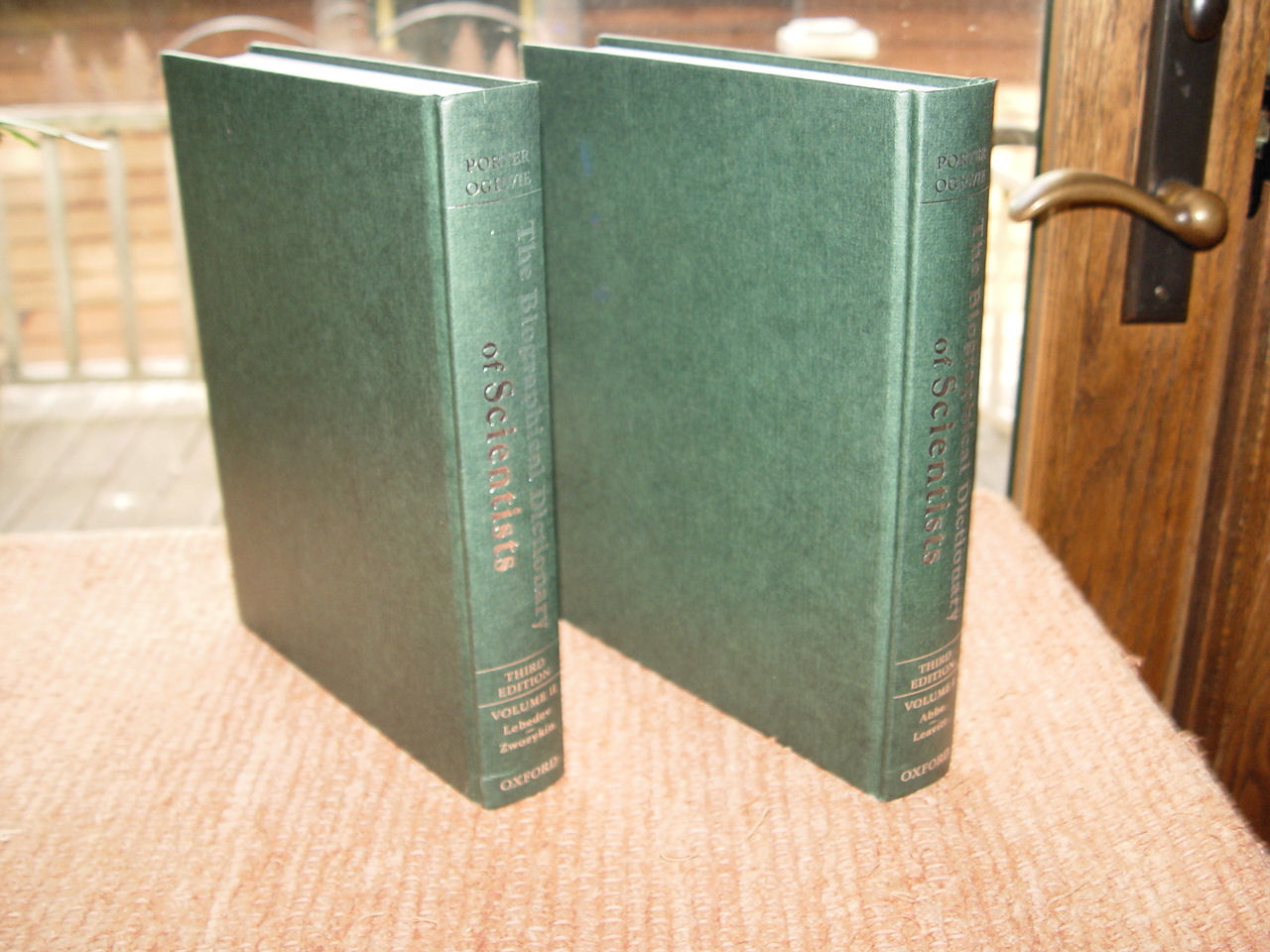 Hardcover: Vol I 598 pages, Vol II 1196 pages -- Approx. Size 10 by 8 by 1.5 inches Author: Roy Porter, Marilyn Ogilvie (Editor) Publisher: Oxford University Press; 3rd edition 2000 ISBN-13: 978-0195216639 ISBN-10: 0195216636 The third edition of this acclaimed reference work offers more than 1,280 concise, authoritative portraits of the men and women of science throughout the ages. Covering every field--from astronomy to zoology, the pure sciences as well as engineering and technology, the new edition of the Dictionary features more than 80 new entries that add the richer representation of contemporary and women scientists--such as Stanley Prusiner, winner of the Nobel Prize for medicine, and Sofia Kovalevskaya, the Russian mathematician. The biographies, ranging in length from 500 to 1,200 words, clearly present each scientist's contributions; they also provide fascinating insights into the workings of scientific discovery and validation. The Dictionary features 150 illustrations, updated historical overviews of the major sciences, chronologies, quotations, bibliographies, tables of scientific discoveries and Nobel Prize winners, and an enlarged glossary. Praise for the first edition: "Excellent...recommended."--Reference Books Bulletin "Recommended for all public and academic collections."--Choice "Makes informative and enjoyable reading....a valuable resource."-- Mathematics Teacher Books are as new. Look like they have never been read. Excellent set as a gift of the Science lover, Scientist bios and / or library addition. Heavy set and oversized. Please see and enlarge photos and email with any questions prior to purchase. Thanks |