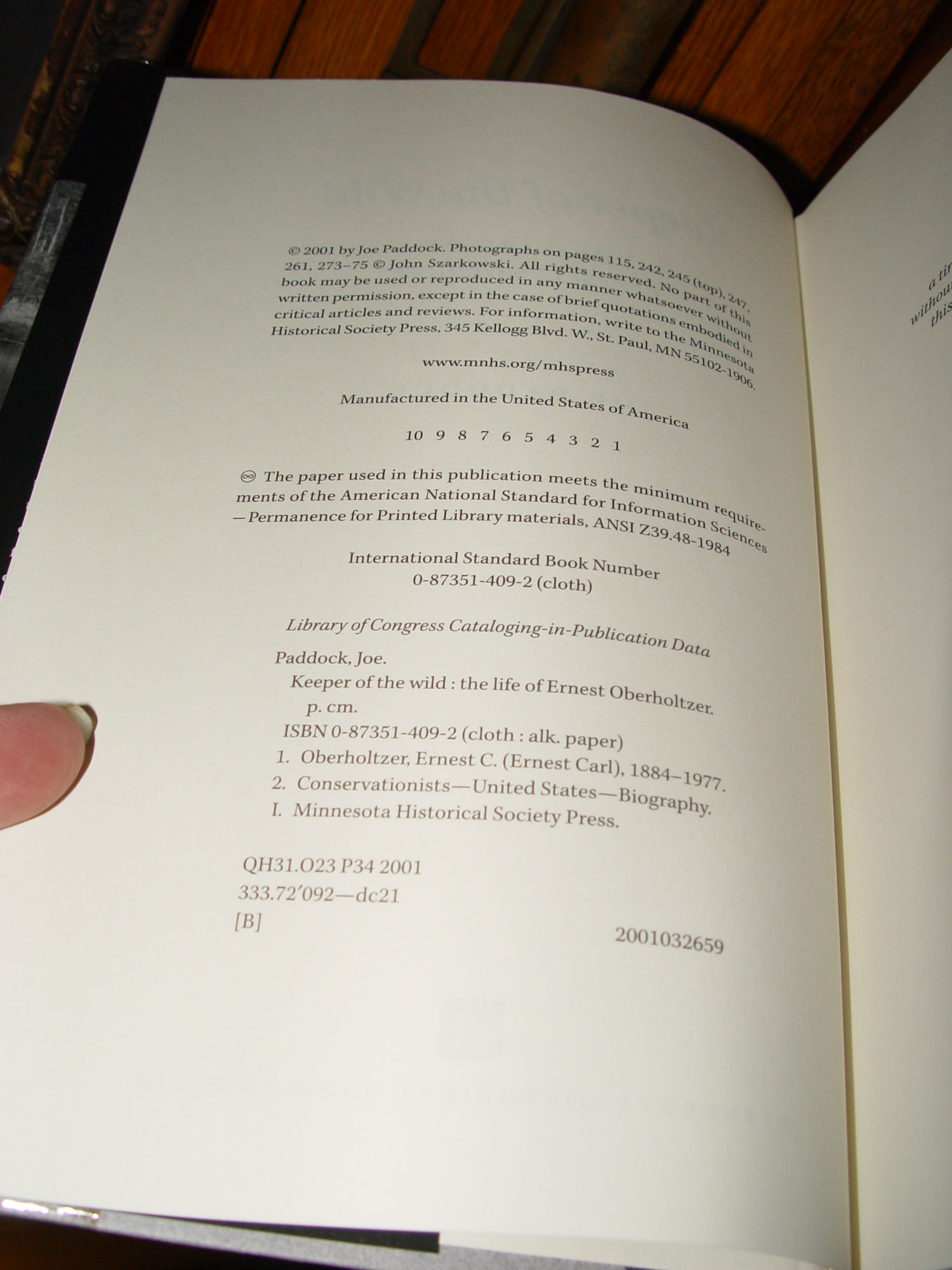 Keeper of the Wild: The Life of Ernest Oberholtzer 2001 by Joe Paddock |