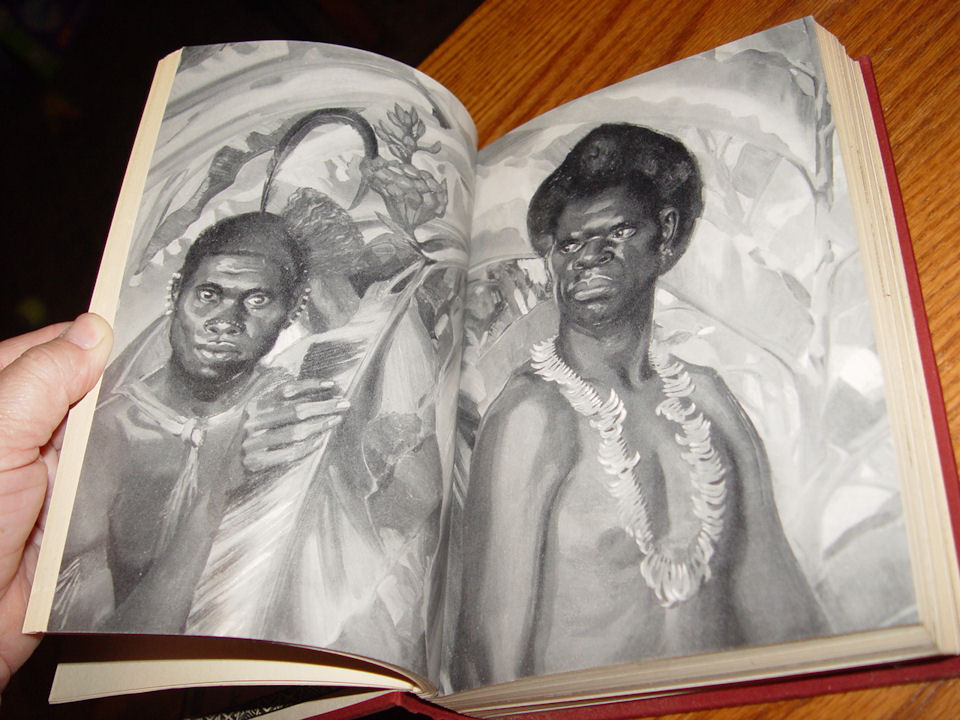 Published by Macmillan, New York, NY, 1942 First Edition Author and Illustrator: Caroline Mytinger 416 pages More than 80 years ago, Caroline Mytinger, a portrait artist, and her childhood friend Margaret Warner set out by freighter from San Francisco with little more than $400 in their pocket and a tin of paints to their name. Their objective was to paint portraits of the tribal people of Papua New Guinea and the Solomon Islands before the encroachment of modern, European-style culture changed their lives forever. This gripping book tells of the two women’s experiences whilst travelling through Melanesia between 1926 and 1930. Volume, illustrated with her paintings of indigenous people, are archived with the Phoebe Apperson Hearst Museum of Anthropology on UC Berkeley campus. In 1926 she traveled to the Solomon Islands and Papua-New Guinea. The dust jacket is showing tears and wear. Book very nice excepting bump to top of spine (see photos). Please see and enlarge photos and email with any questions prior to purchase. Thanks |