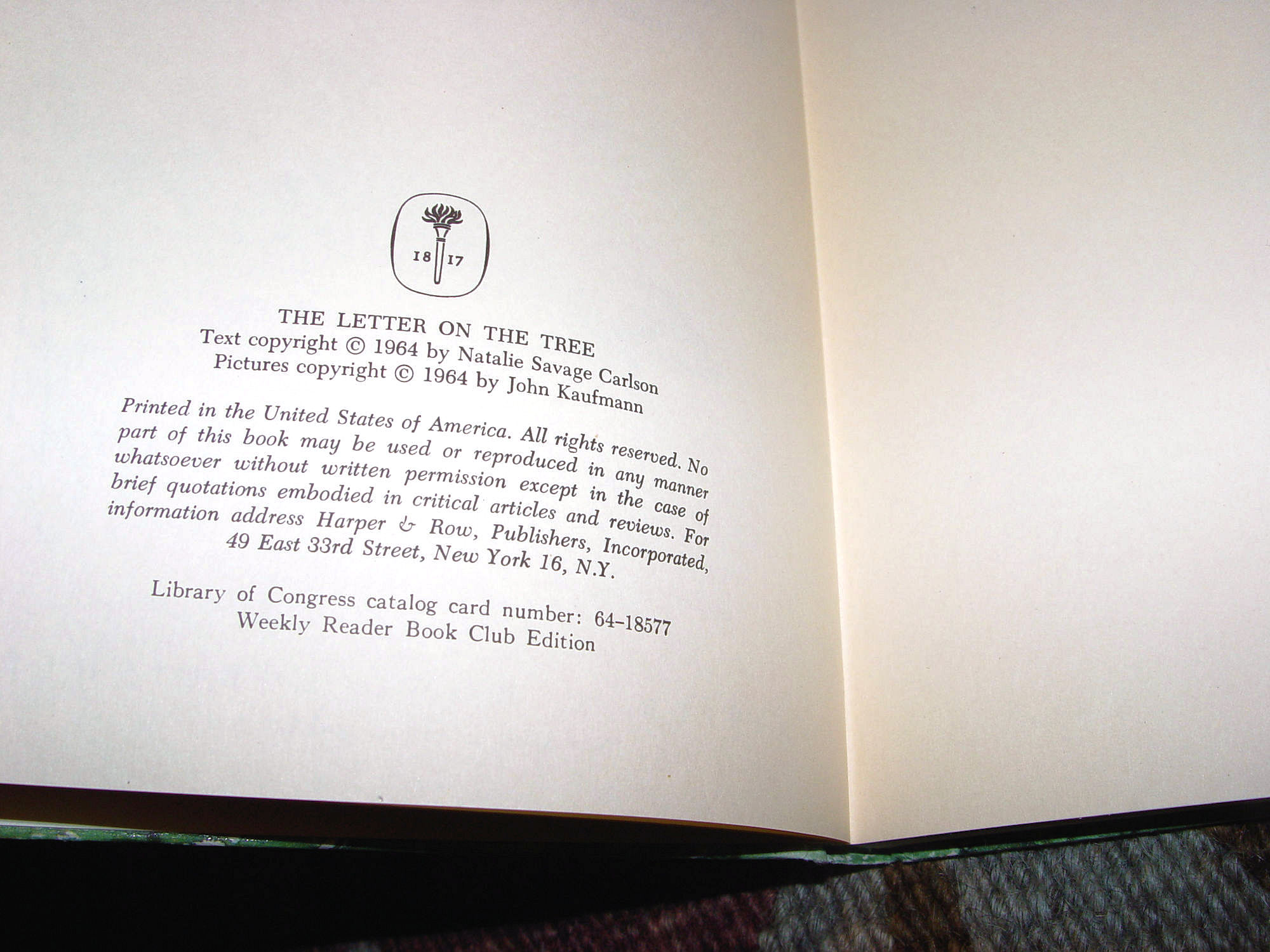 The Letter on the Tree 1964 HC Children's Book by Natalie Savage Carlson |
