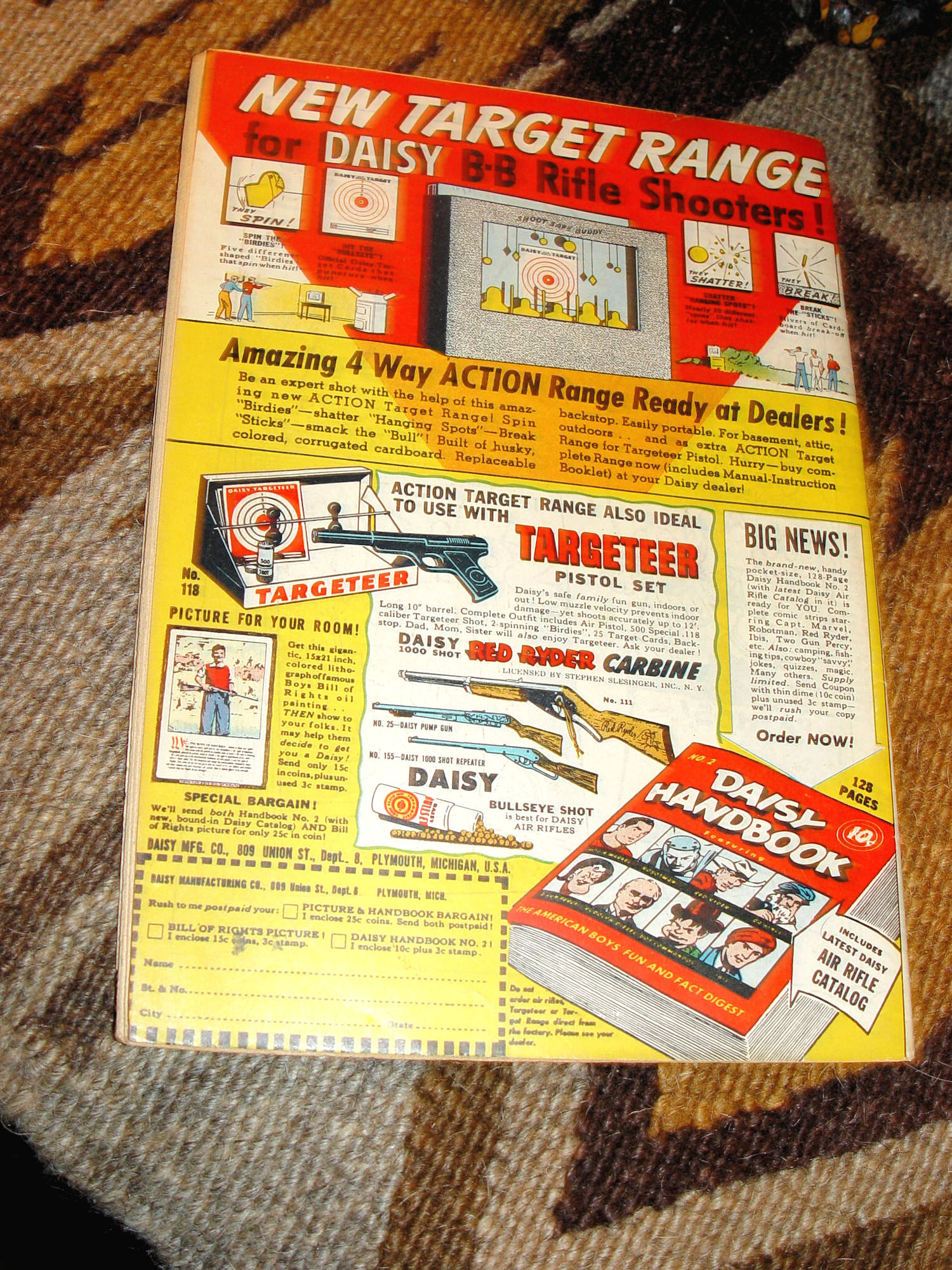 By: DC National Comics Issue: No. 21 Date: Sept. Oct 1948 Cover Price: 10c 52 Pages Buzzy Brown ... Charity Bazaar Kisses America's Favorite Teen Ager! Hard to find edition of Buzzy. Very nice condition for the age. Slightly bumped corners, note lower right front shows a fold at tip. Only real issue is the upper staple shows small tears at spine. A little off kilter. Clean spotless interior with slightly toned pages due to age. Kodak ad, Wheaties and more. Fun gift idea for the comic buff or for your own collection. I will be listing more fun comics from same estate. I do offer shipping discounts for multi item purchases. Feel free to email any questions that you may have. I do offer shipping discounts for multi item purchases. Thanks for stopping in! |