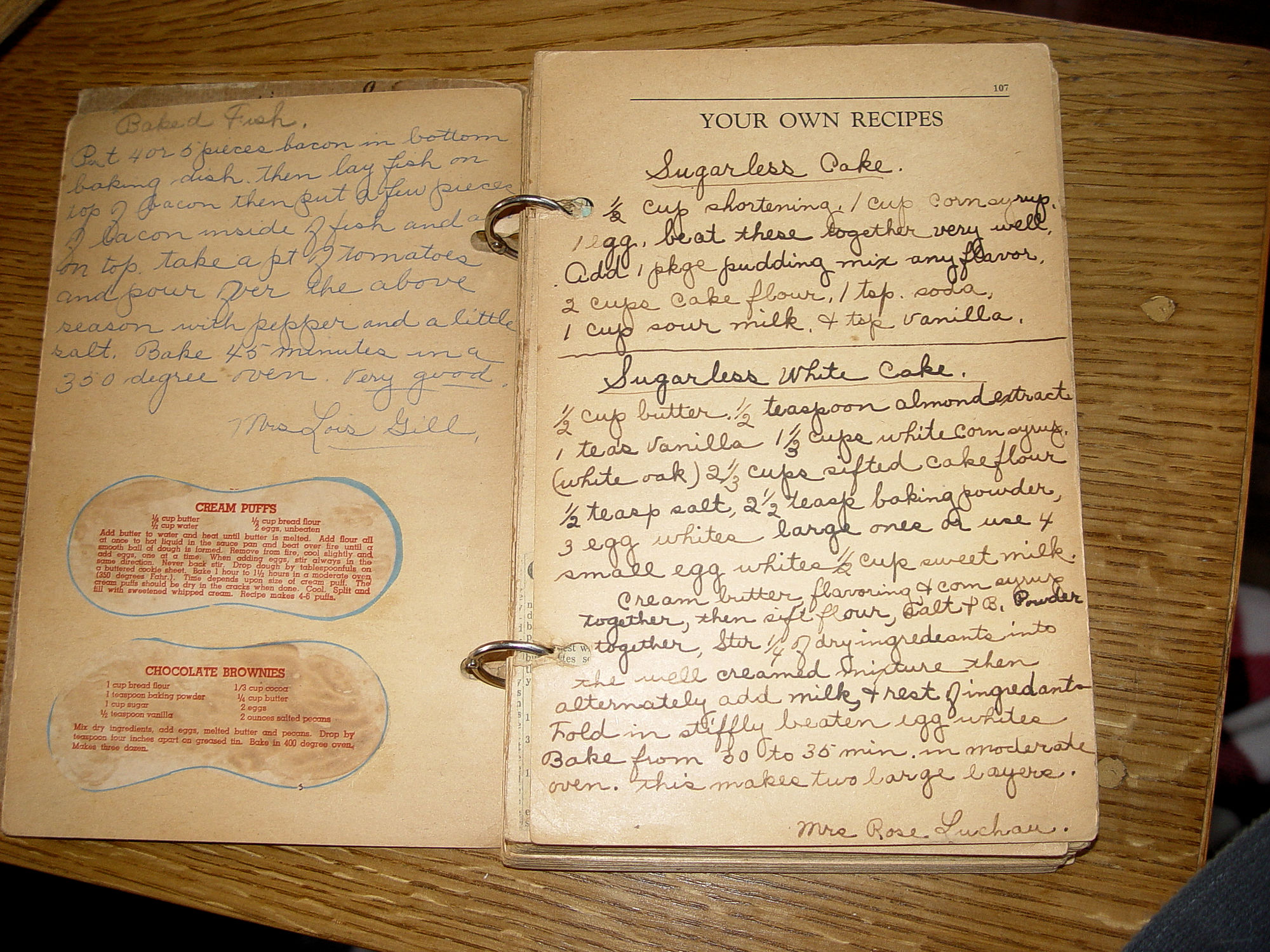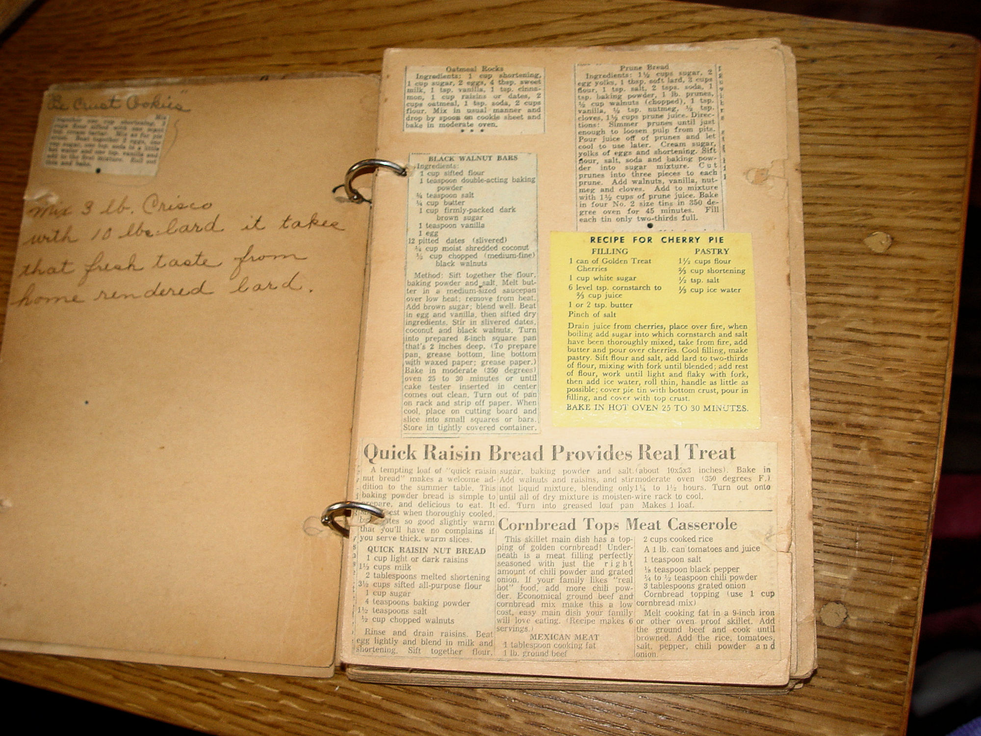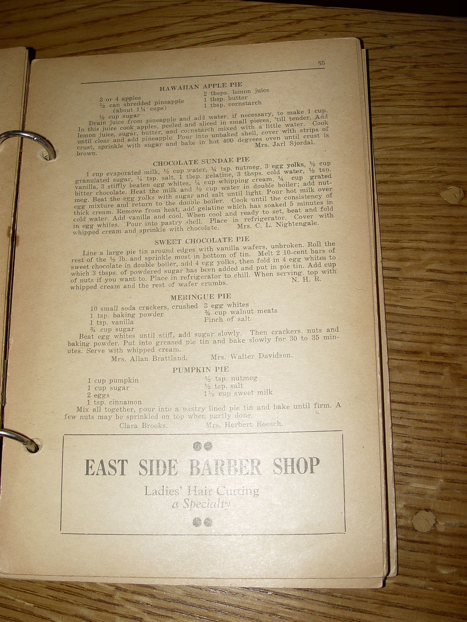 Publisher: First Lutheran Church First Edition 106 pages -- Approx. size:9 " by 6.25" Many years ago I found this in an Ada home that I purchased an old truck from. It's as found all those years ago and time to share as I'm getting older. The book is signed Mrs. Harry Stevens and dated 1937 on the front. Many fabulous recipes of the era from local folks, each named below their submissions. The advertising is perfect for anyone wanting to do genealogy or town history. Every page seems to have a business on it. Ada Motors, Water and Light Dept. Ada, Quality Groceries, J.C. Penny's, Simpson Garage, Bangs Market and even a Dr. Quirk Veternarian. The owner has many of her own additions and they look yummy. The Dumpling's on a ragged piece of paper is one I will be trying (can never get mine quite right). Butter balls look pretty tasty too! Fair to good condition for it's age and use. It was loved. The book is held somewhat together with rings but pages are loose as well as covers, but still looks complete. The back cover has taped, upside down page. For the next owner to decipher. Spotted with old drips and droplets from the cook (as it should be). Please enlarge all photos and feel free to email with any questions you may have. Thanks for visiting. |