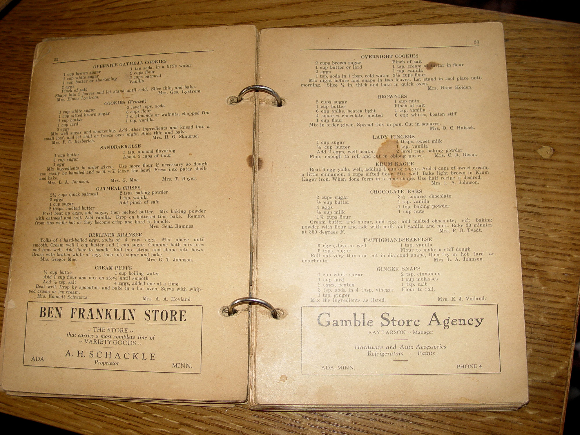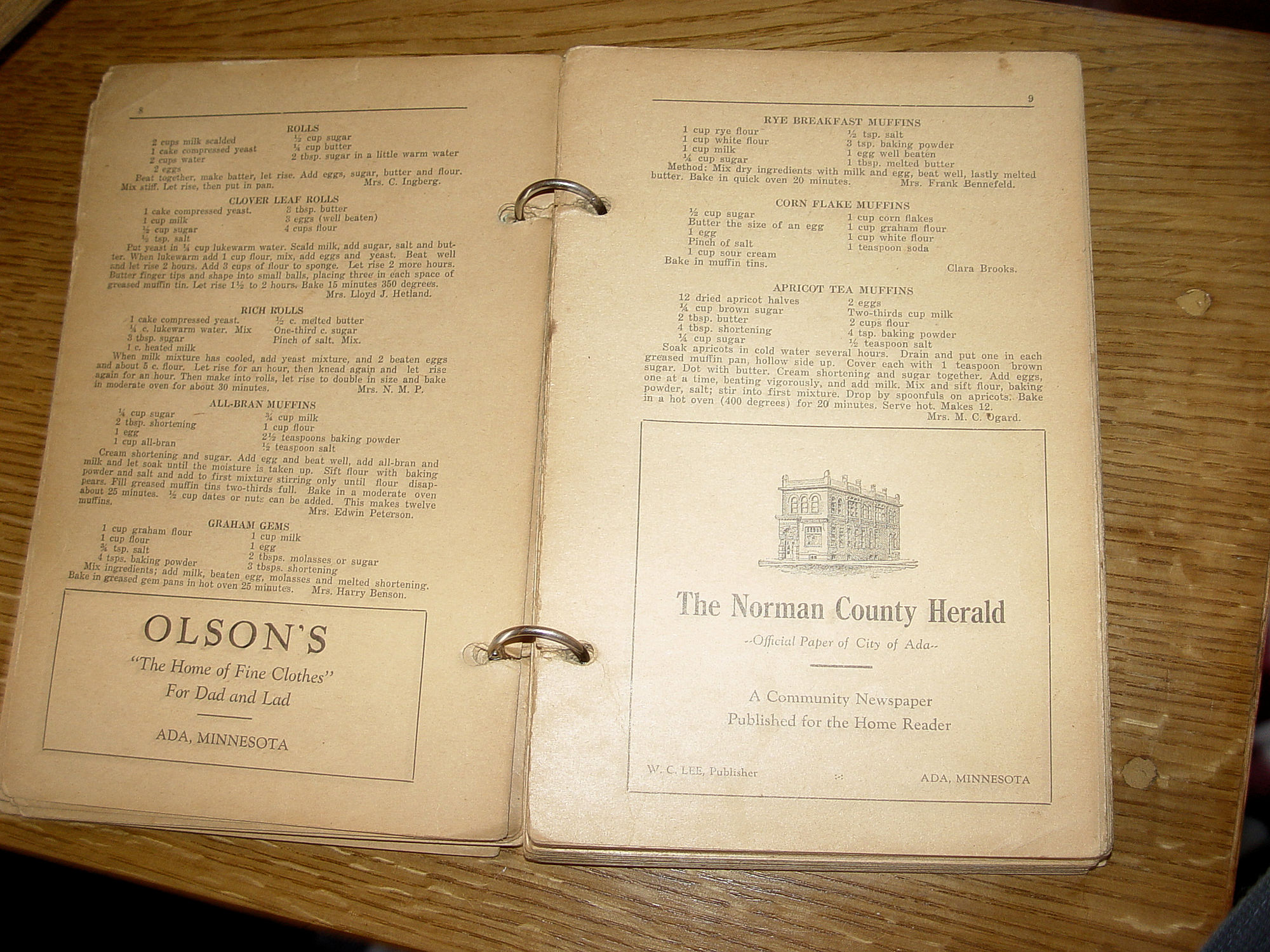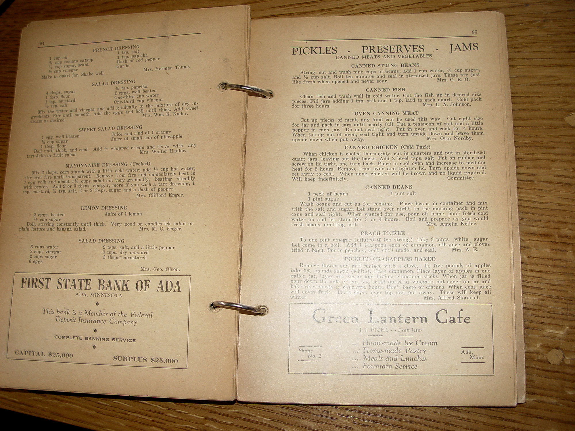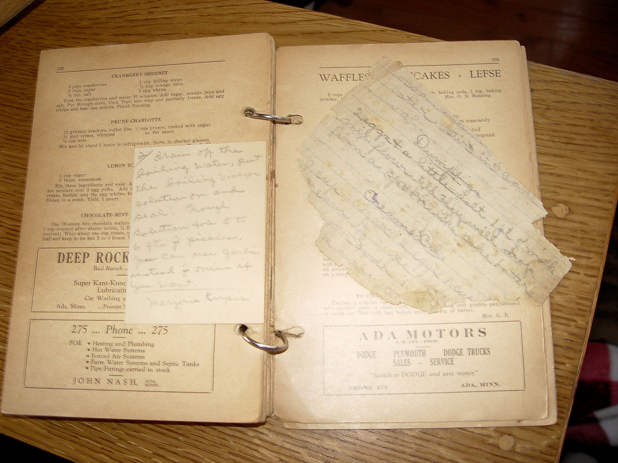 1937 Ada Minnesota First Lutheran Cookbook Local Recipes and Ads |