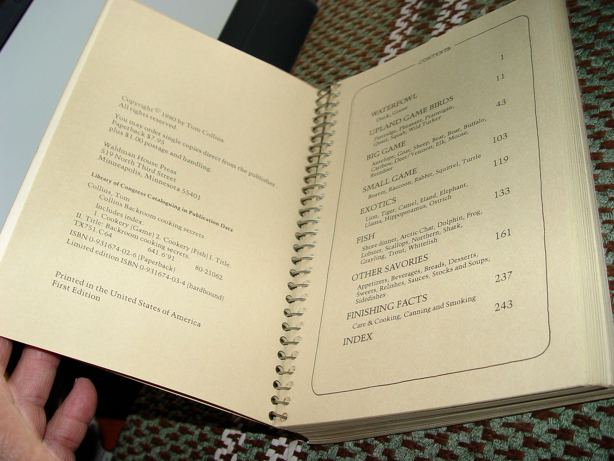 Collins' Backroom Cooking Secrets: Wild Game, Fish and Other Savories 1st Ed. Signed Copy |