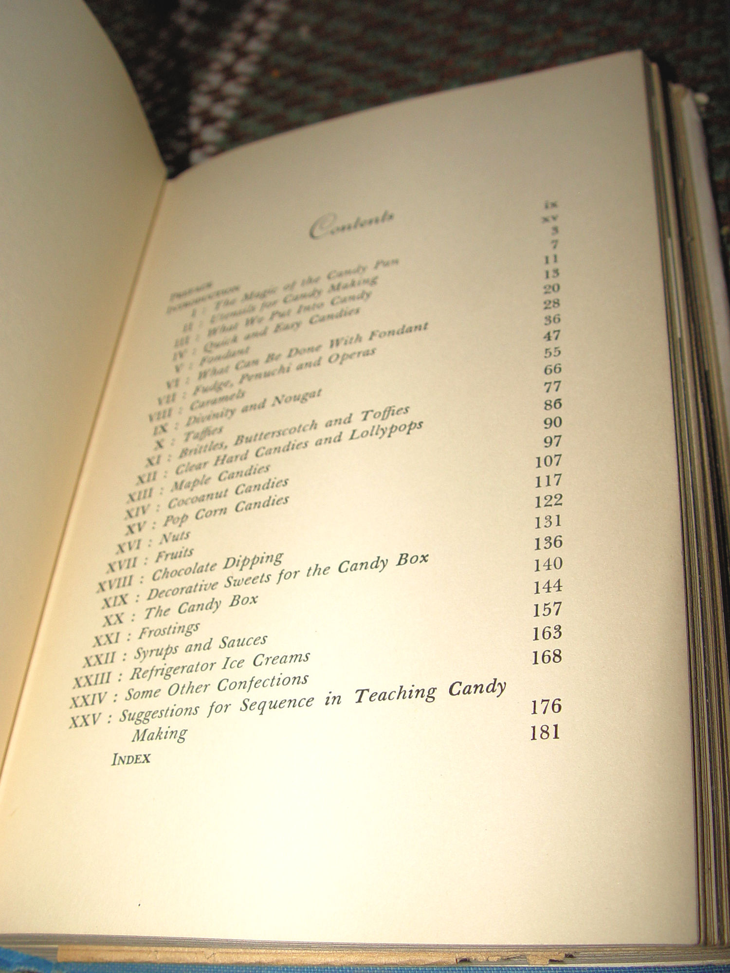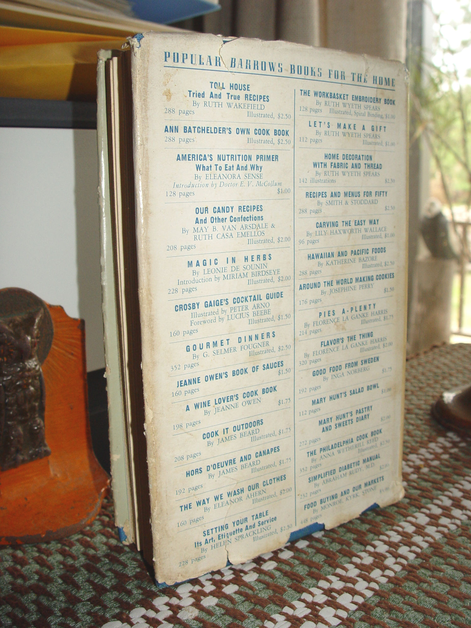 Publisher: M. Barrows and company, inc 1941 First Edition May Belle Van Arsdale (Author) Ruth Parrish Casa Emellos 1897-1986 (Author) 188 pages -- Approx. size: 8.25 by 5.5 inches This classic candy cookbook covers all the bases, from fondant and fudge to caramels and chocolates. It also includes chapters on frostings, syrups and sauces and refrigerator ice cream. It was authored by two professors from the Columbia University's Teachers College. Very good condition with scarce jacket. Book shows slightly bumped corners with light wear and corner bumping to blue cloth boards. Interior very clean with no writings. Loaded with misc. cutout recipes and more. Please enlarge all photos and feel free to email with any questions. Thanks for visiting. |