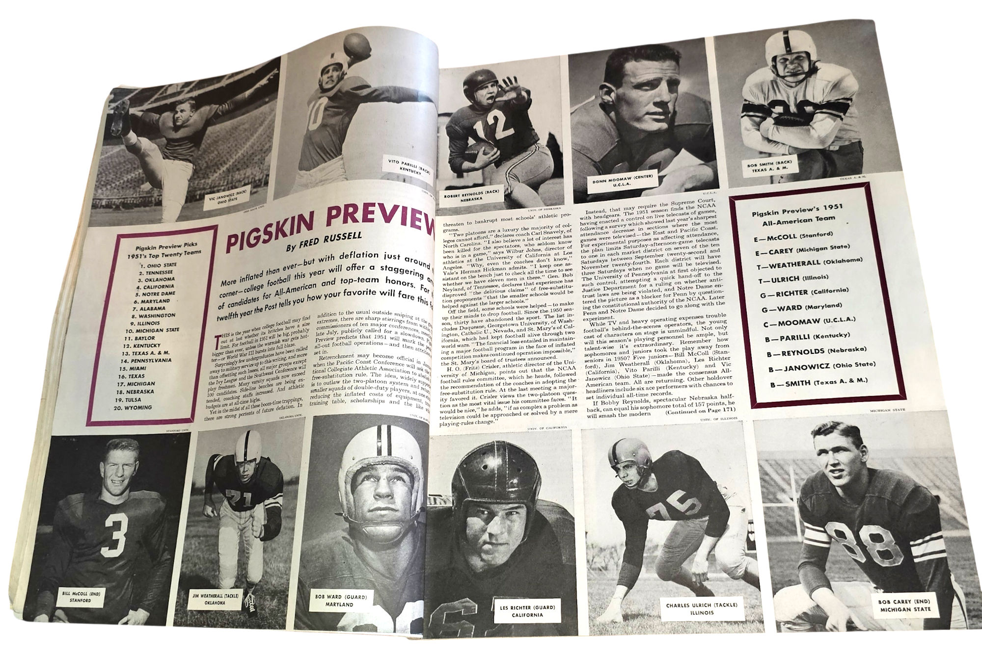Thick complete edition with 204 pages. Loaded with killer color advertising for the era. Pigskin preview by Fred Russell. 1951s top twenty teams.
