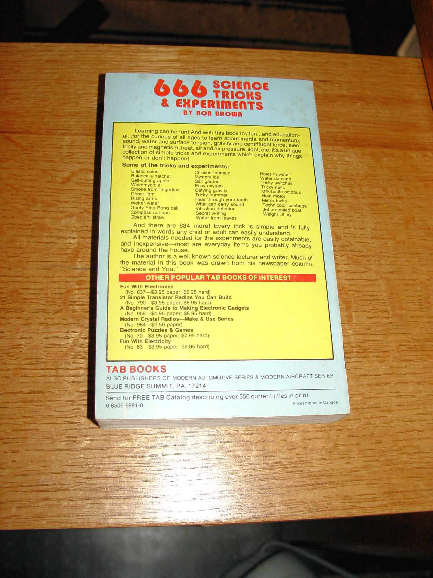 666 Science Tricks & Experiments by Bob Brown 1st Ed. 1978 |