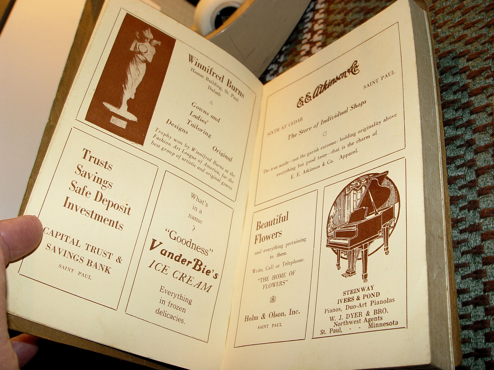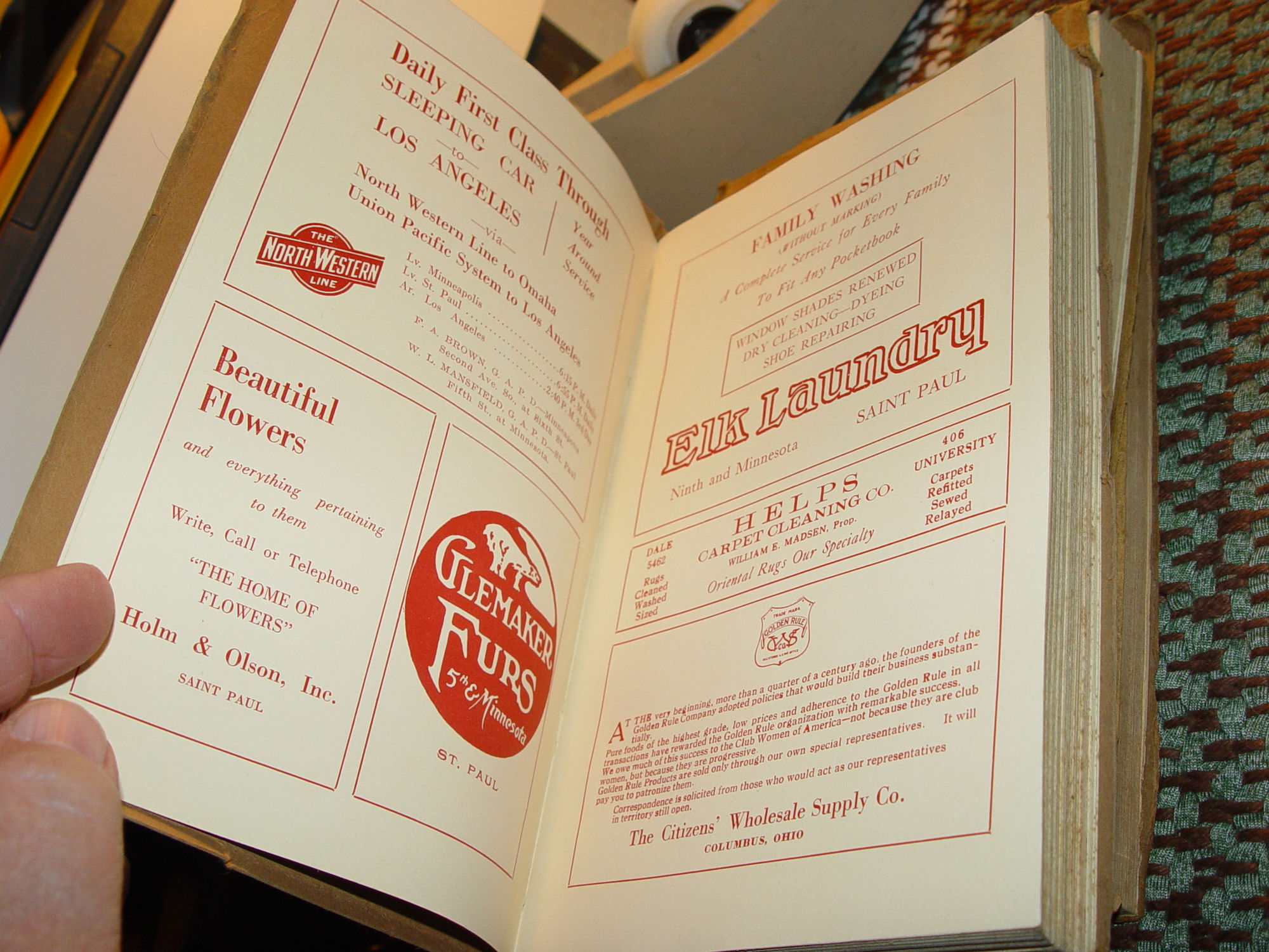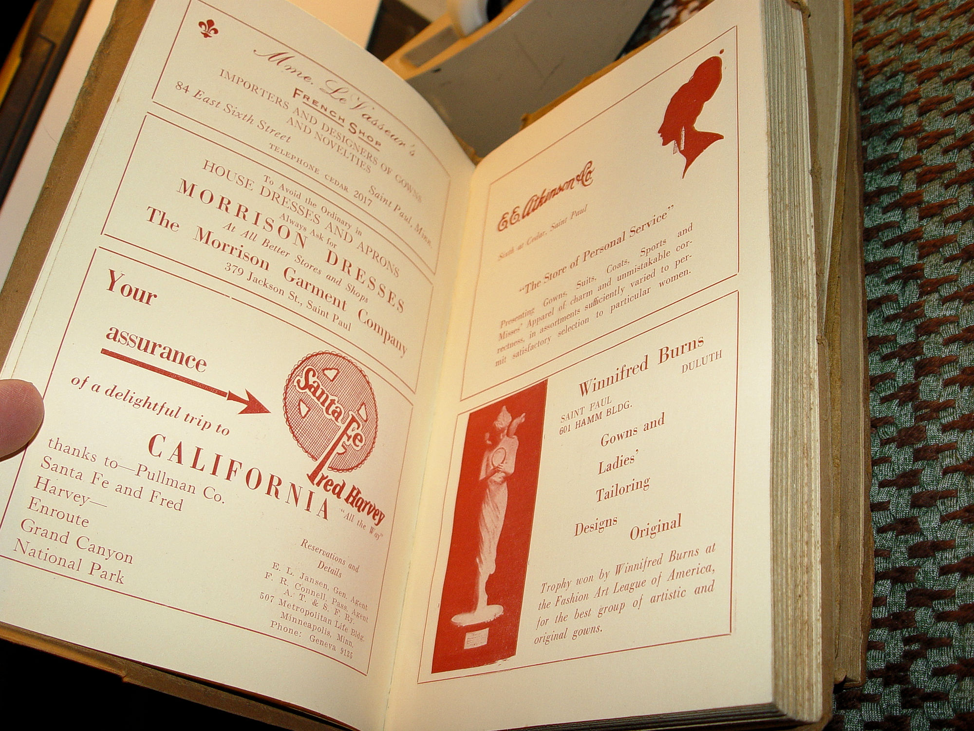 Published: The Cootey Company Minneapolis, Minn. Annual report of the Minnesota Federation of Women's Clubs Rare Editions Approx Size: 8 x 5.25 inches Three scarce books! 1917 -1918 1921 - 1922 1923 - 1924 These books are very scarce. In the suffrage era, Women's clubs became quite popular. This particular group, M.F.W.C. of Minnesota started in 1895. Joined The General Federation of Women's Clubs same year. An organization dedicated to community improvement through volunteer service and to providing opportunities that strengthen the role of women. The Federations colors: Russett and Gold. Federation Pin: Gold Star bearing in Russett M.F.W.C.. Showing names of prominent towns, women and a complete journal on activities. A federation of over 3,000 women's clubs in the United States which promoted civic improvements through volunteer service. Many of its activities and service projects are done independently by local clubs through their communities or national partnerships. Remains one of the world's largest and oldest nonpartisan, nondenominational, women's volunteer service organizations. Covers are brown paper wraps and show very minor soiling. Very good condition for this timeline. The earliest edition shows a dark discoloration to the far edges of most pages. The others are clear. The 1921 - 22 book shows the glue let go on the spine but book is still intact. Fabulous early business advertising in the later books. * Pettijohn Pure Products Co. * Midland National Bank * Red Cross Federated * Mrs. Miller Salted Nuts * Everette Pianos * Grahams Quality Ice Cream * A.G. Reinecke Furs *Northwestern Line RR * Chicago Milwaukee & St. Paul Railway * Calumet Baking Powder and More .... Great graphics. Looks as new but for very minor bumped cover corners. Spotless interior. Please see photos, enlarge and email with any questions. Thanks for looking. |