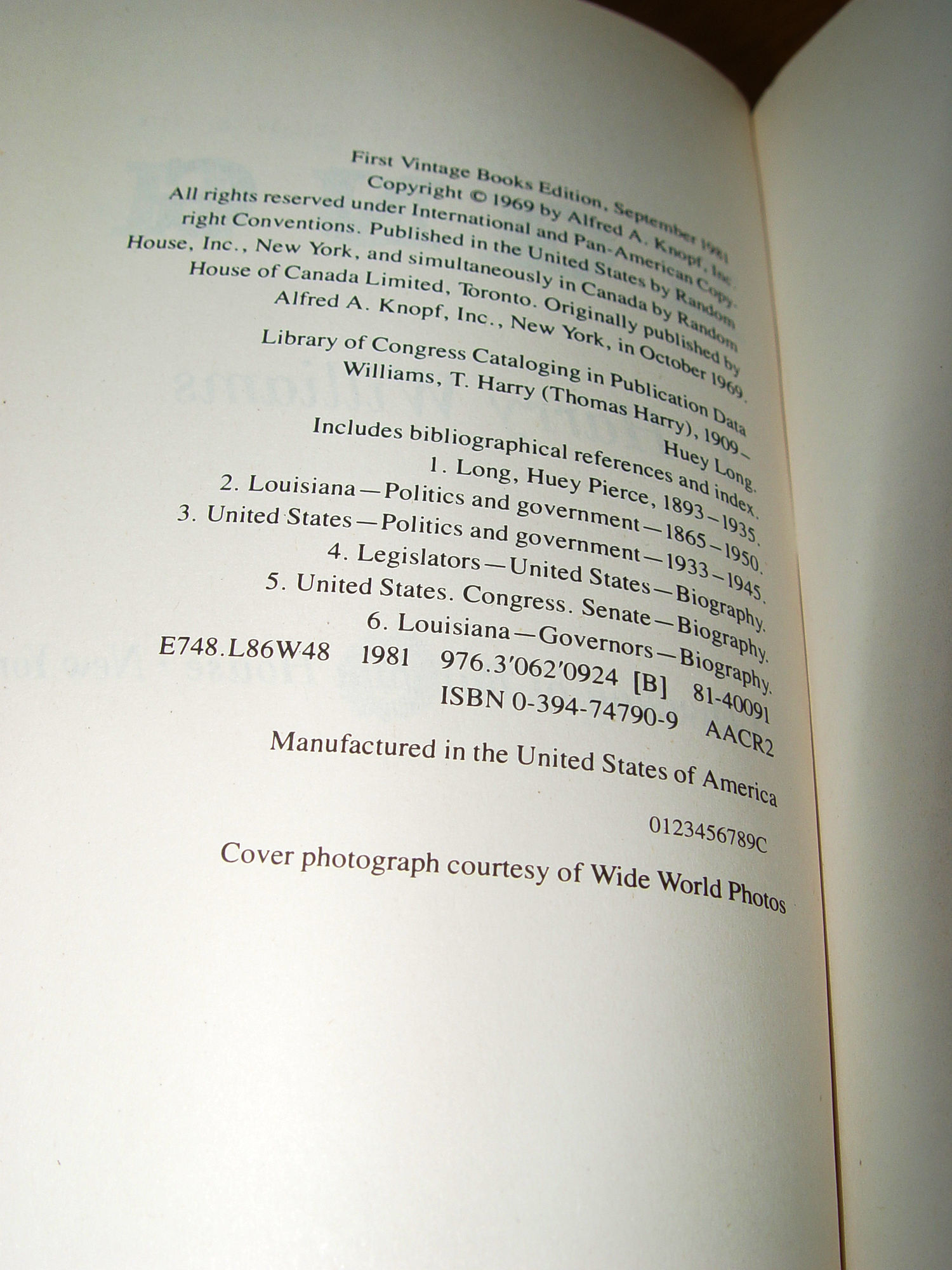 Huey Long 1981 First Ed. Vintage Books Publ. by T. Harry Williams |