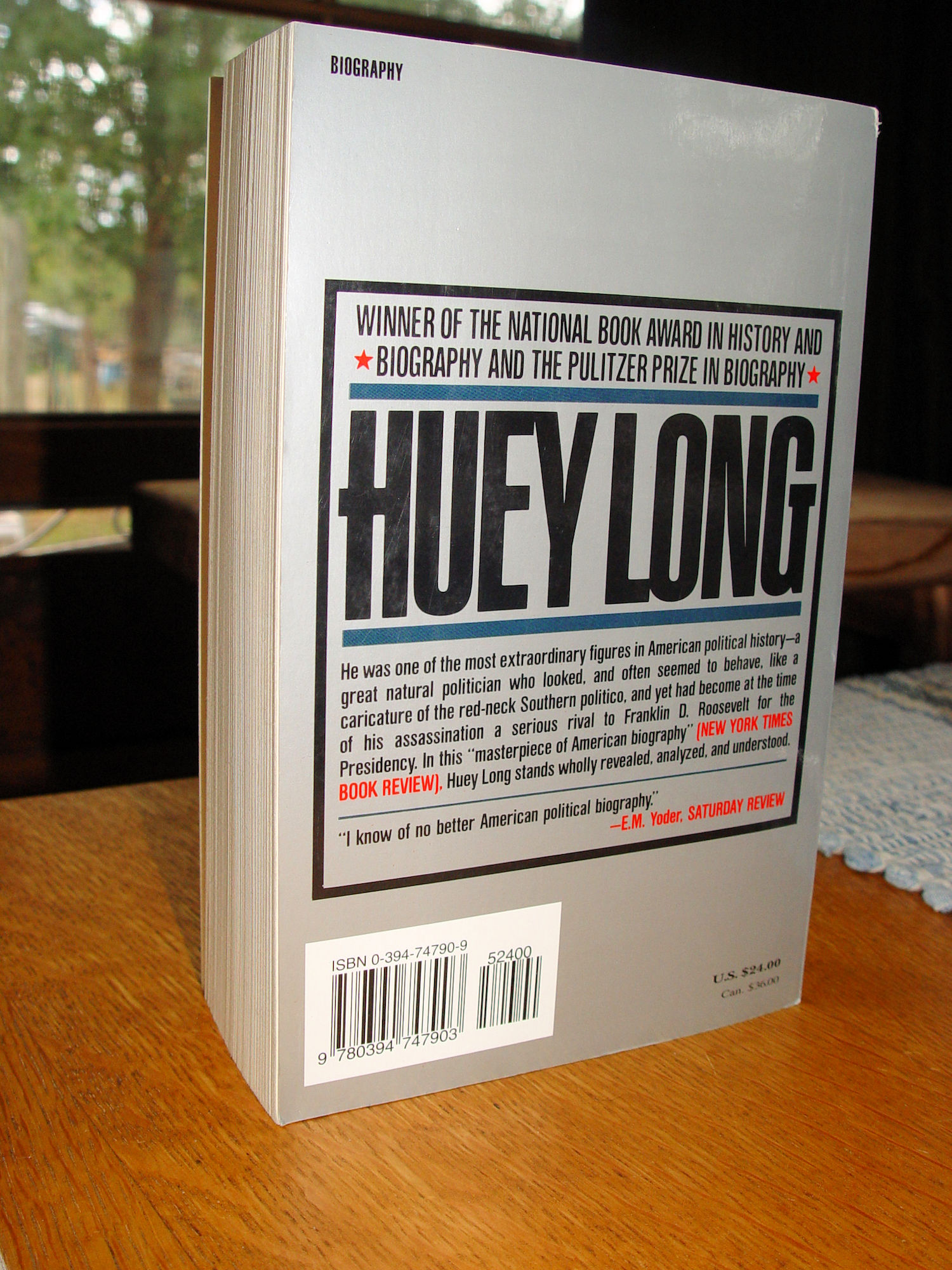 Publisher: Vintage Books 1981 ISBN-10 : 0394747909 ISBN-13 : 978-0394747903 944 pages -- approx. size: 5.25 by 7.97 inches Winner of the Pulitzer Prize and the National Book Award, this work describes the life of one of the most extraordinary figures in American political history. Huey Long was a great natural politician who looked, and often seemed to behave, like a caricature of the red-neck Southern politico, and yet had become at the time of his assassination a serious rival to Franklin D. Roosevelt for the Presidency. In this "masterpiece of American biography" [New York Times Book Review], Huey Long stands wholly revealed, analyzed, and understood. Very nice softcover that looks to be well taken care of. Previous owners name on the title page. Only very minor handling wear. Please see photos, enlarge and email with any questions. Thanks for looking. |