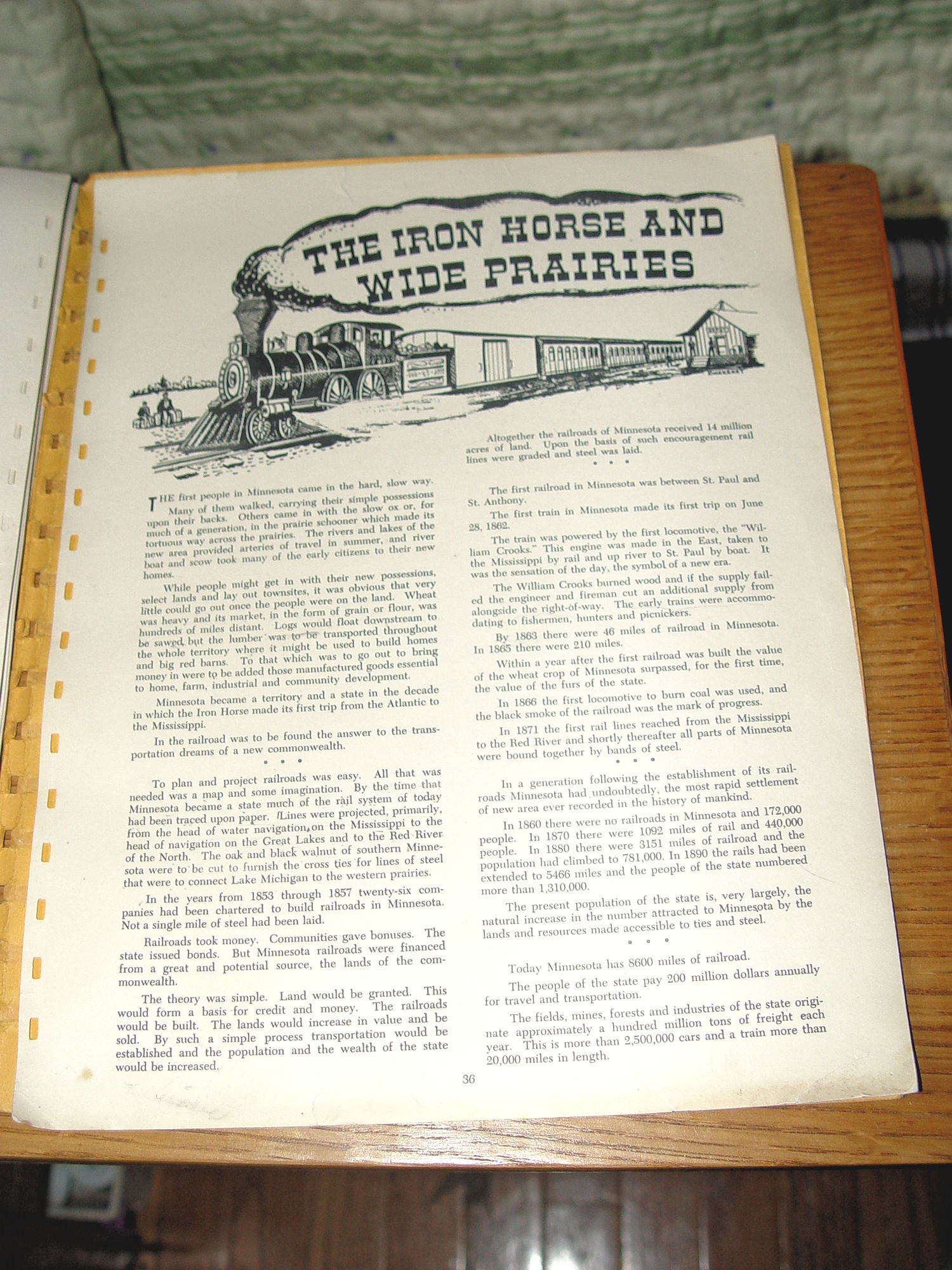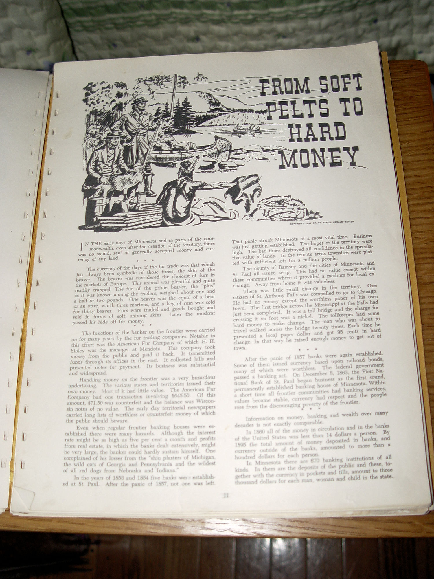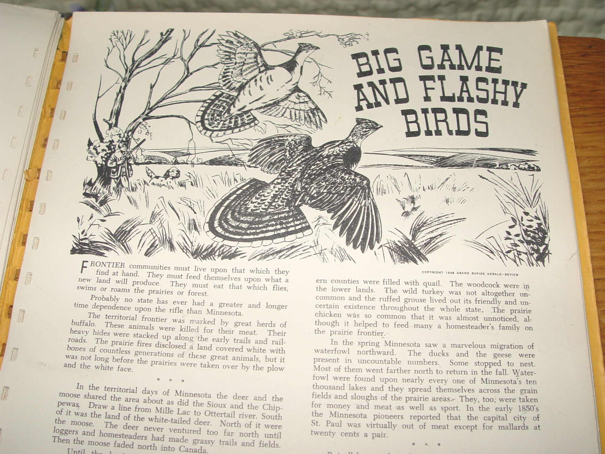Publisher: Grand Rapidc Herald-Review 1949 36 pages -- approx. size: 12 by 9.24 inches Early (Stories of Progress) in Minnesota History Scarce find. The story of the development of Minnesota, through the first hundered years fo the life of the commonwealth. Seeking to tell of Minnesota as it was and as it is as of 1949. The author is L.A. Rossman, publisher of the Herald-Review at Grand Rapids, MN. 36 pages, all one-sided with great graphics by Ken Kwakenat.and easy to read dialog. This was taken from original newspaper articles over time and throughout the state. Very good condition other than the plastic spine is missing, book is intact though. Slightly bumped corners and minor edgewear. Some soft soiling to covers. Pages are clean and bright. Please see photos, enlarge and email with any questions. Thanks for looking. |