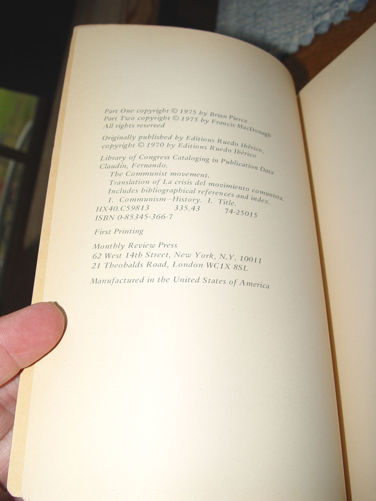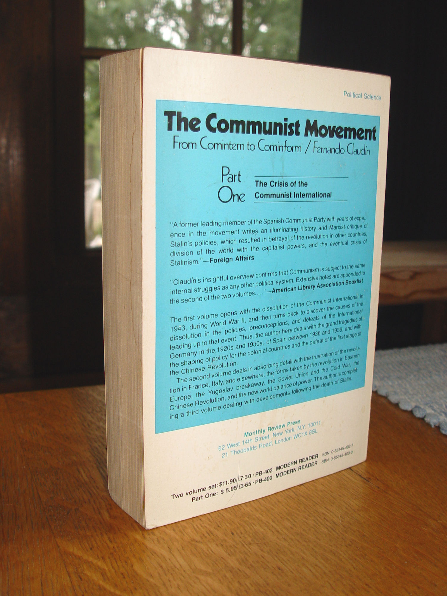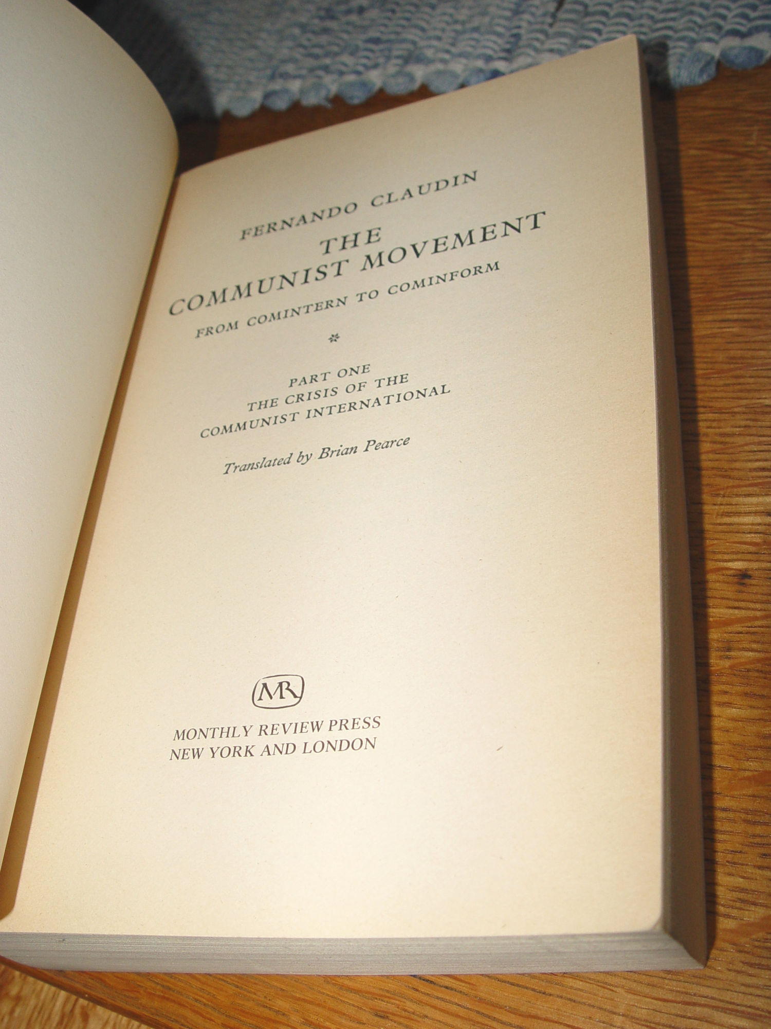 The Communist movement: From Comintern to Cominform 1975 F. Claudín |