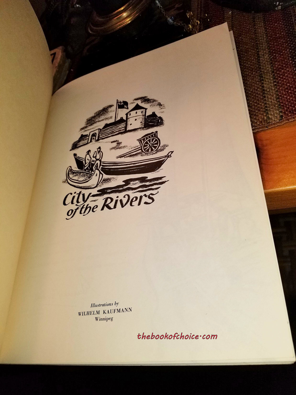 The book covers the development of Winnipeg, particularly focusing on its geographical significance at the confluence of the Red and Assiniboine Rivers.