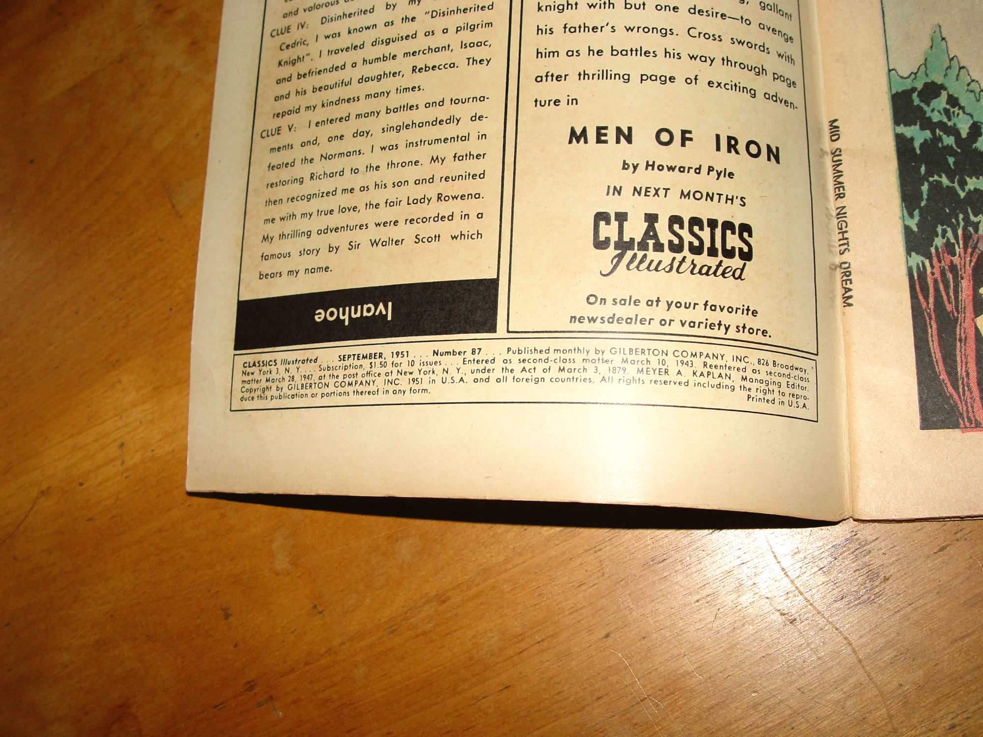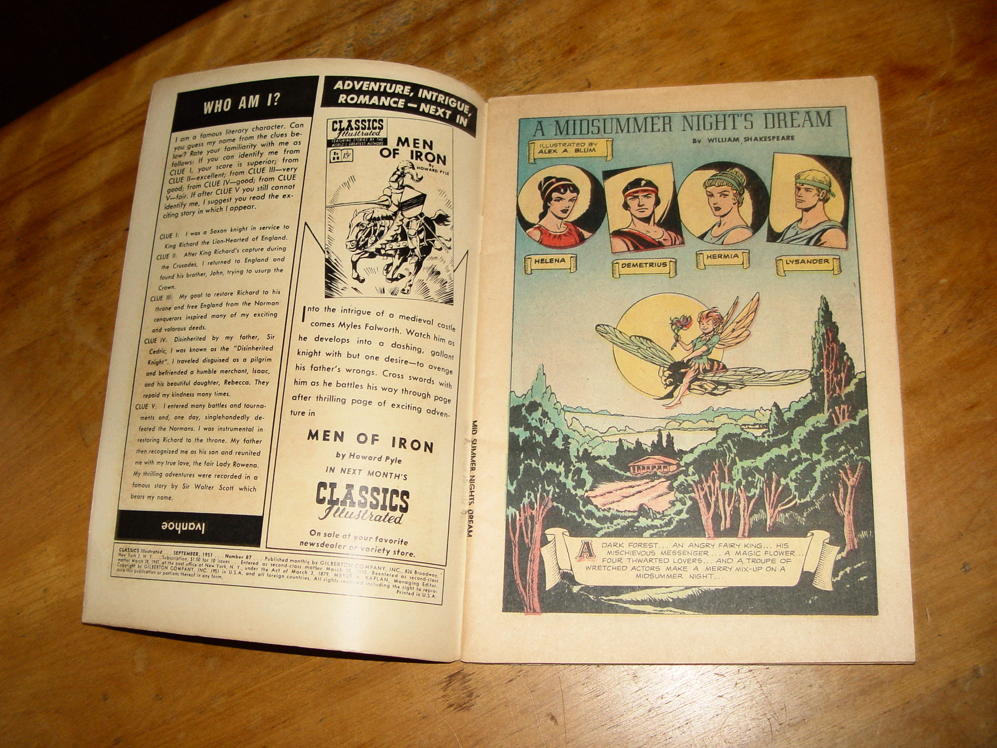 1951 Midsummer Night's Dream No. 87 W. Shakespeare - Classics Illustrated Comic |