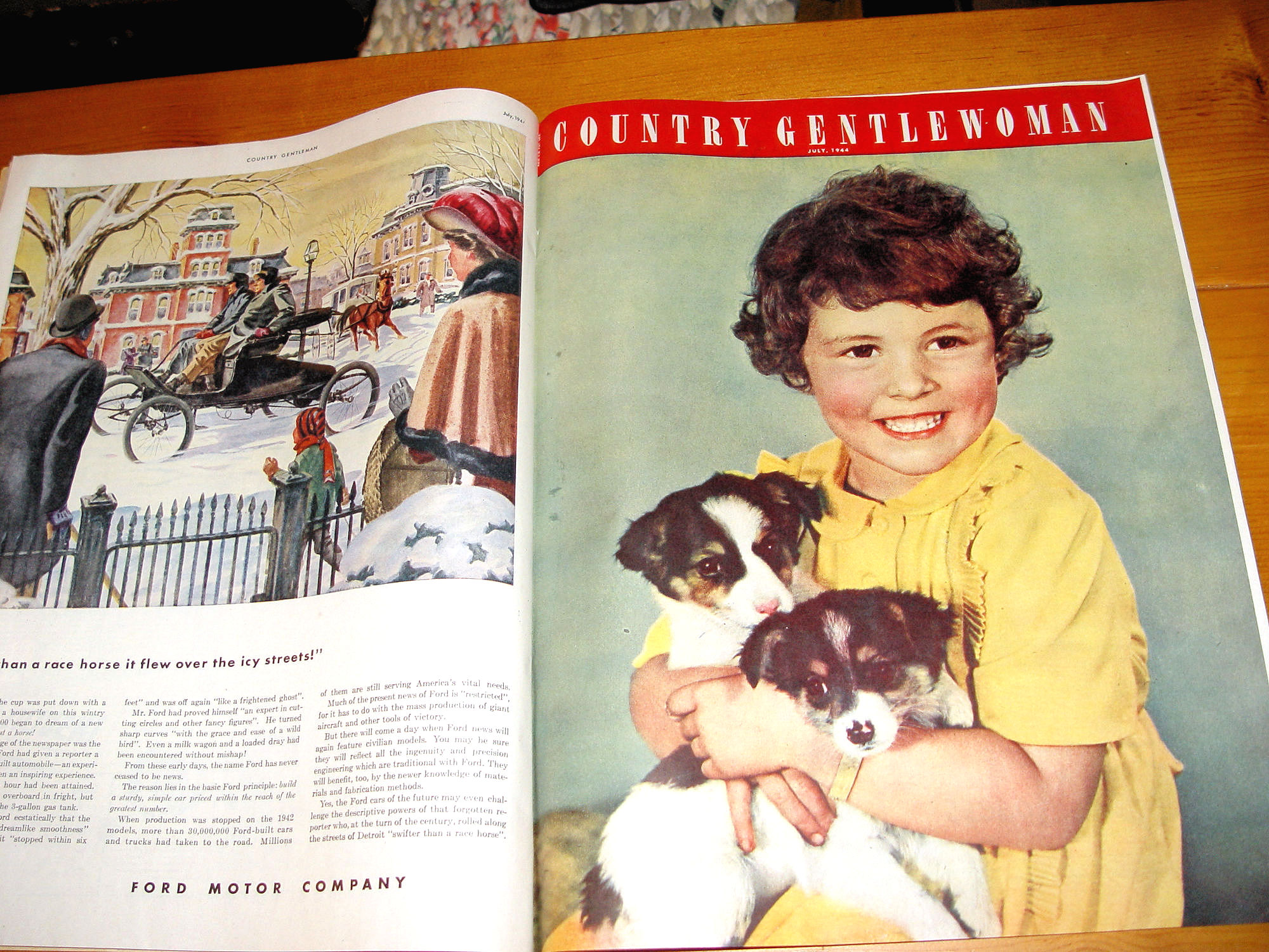 Magazine from the past. Beautifully illustrated front cover that would look great framed as a piece of art. There is also an inset cover with a little girl holding puppies. This is in top form and ready to frame or enjoy the magazine as a whole. It is in super condition! Any one of the advertisements would make great gifts framed. There is a super cool aid advertisement, Firestone Tires, Tractors and much more.