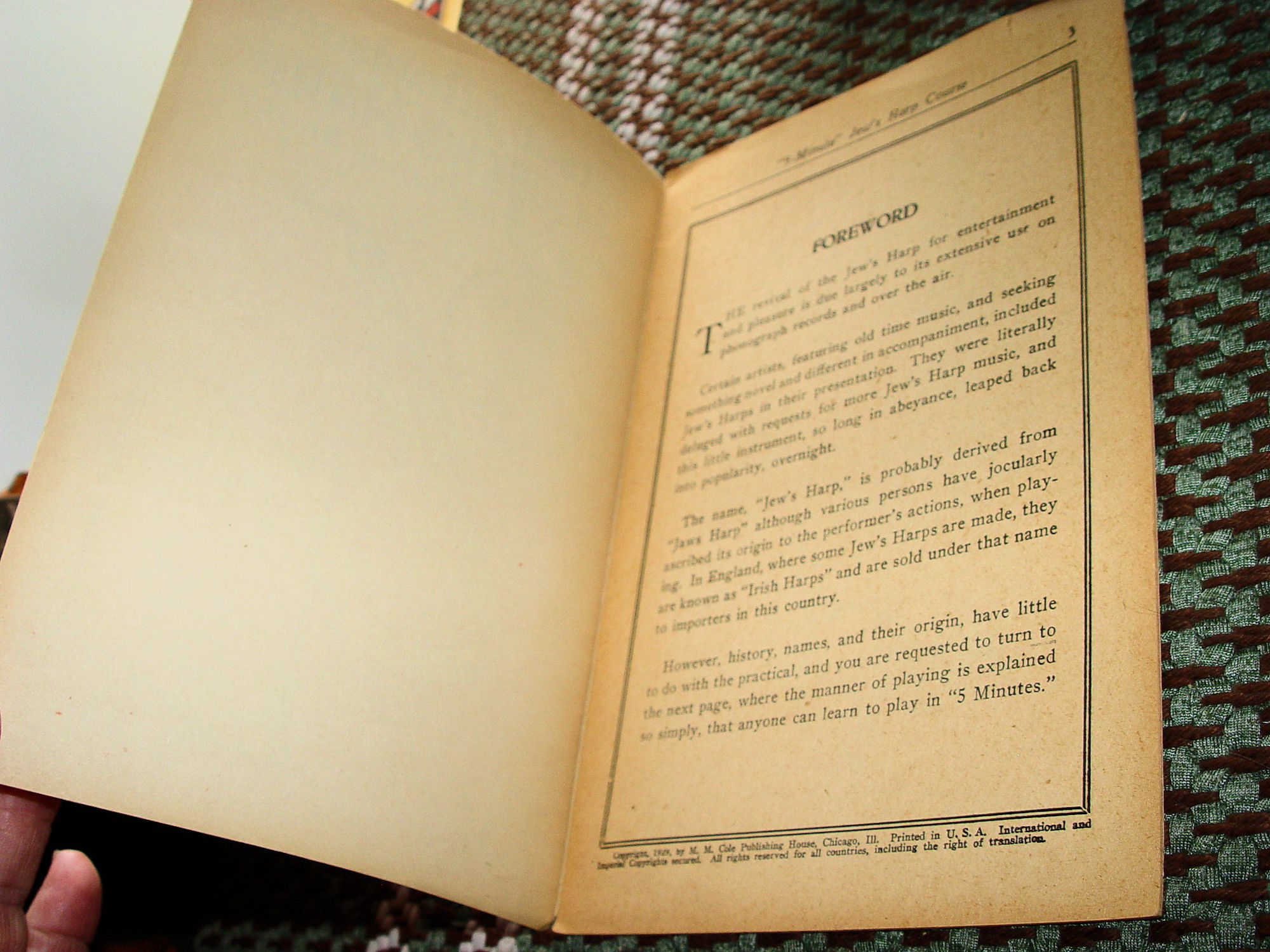 5 Minute Jew's Harp Instruction Book - Carson J. Robison 1929 by M. M. Cole Publ. |