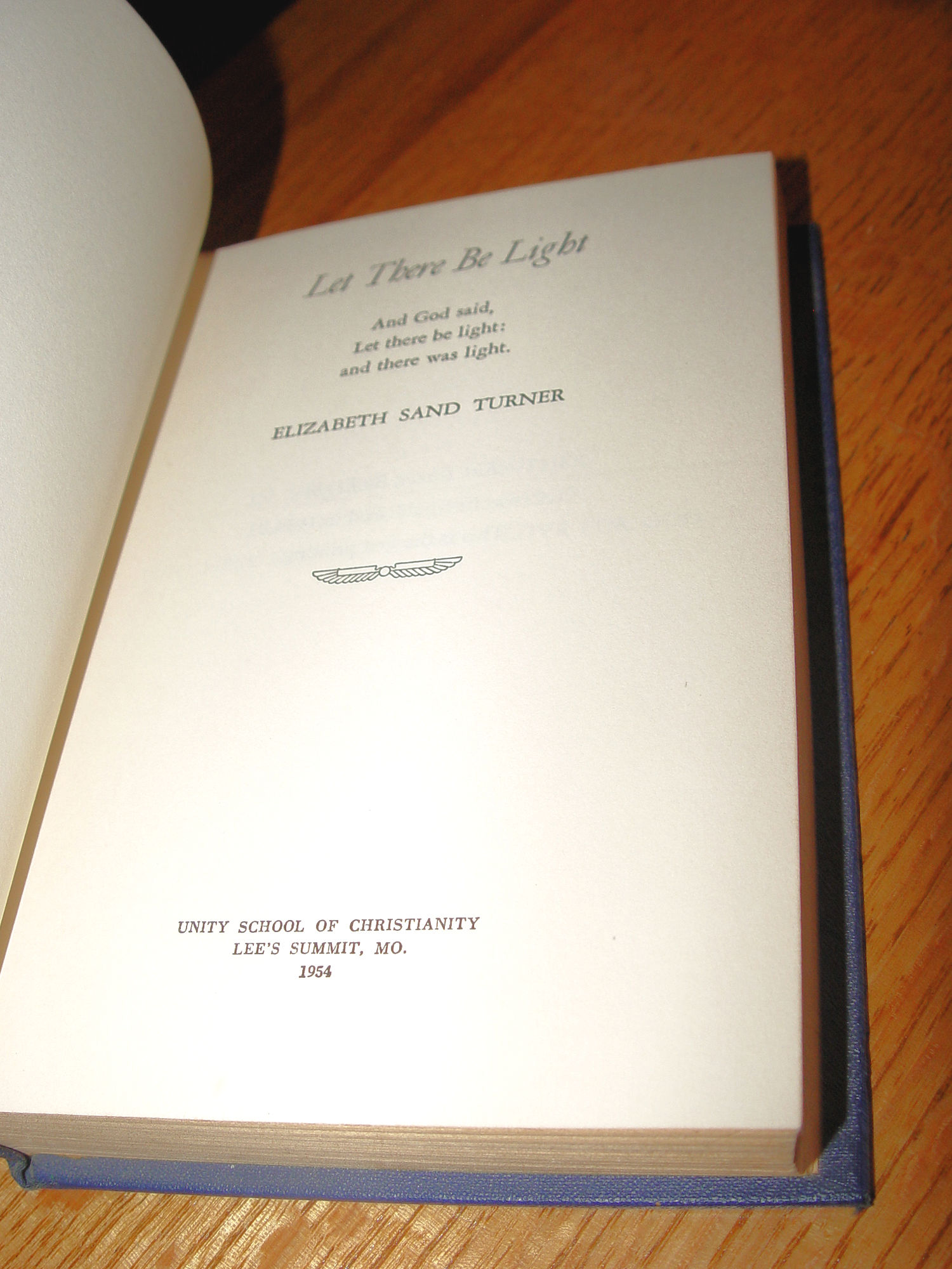 282 pages plus index Approx. size: 6.5 in by 4.5 in Old Testament Interpretations Elizabeth Sand Turner was a prominent Unity teacher, and Let There Be Light is the first volume in her three‑part metaphysical Bible study series. Turner interprets Genesis through the lens of spiritual consciousness and inner development, following Charles Fillmore’s Unity teachings. Very nice condition with only slightly bumped corners Blue cloth with gold gilt lettering on spine and cover. Pages clean of any writings excepting the back endpaper shows a Unity school small stamp and front endpaper shows previous owners name. Please see photos, enlarge and email with any questions you may have. Thanks for looking. |