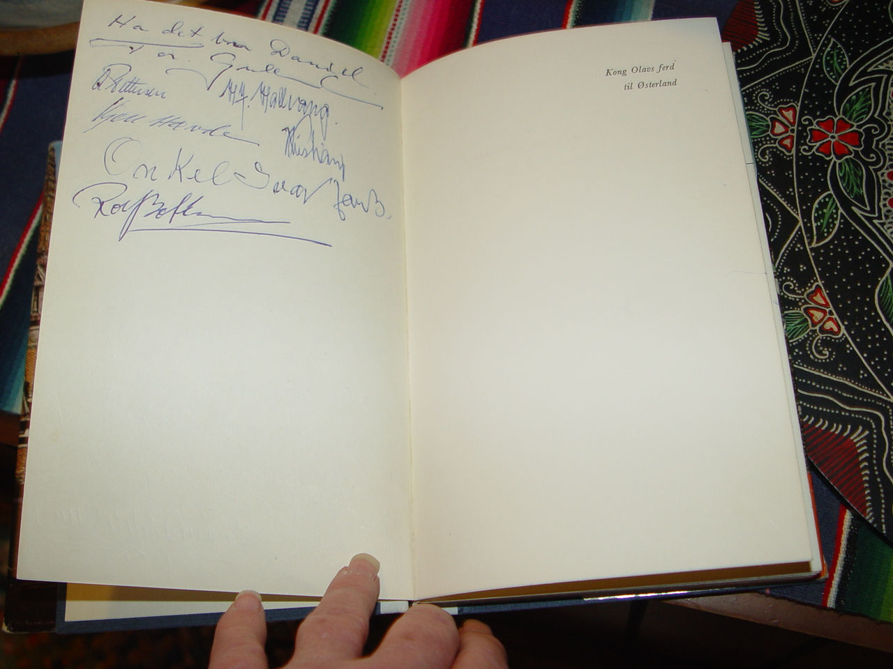 Publisher: Aschehoug, Oslo 1965 153 pages; Approx size: 8.75 by 6" Language(s): Norwegian Olav V (born Prince Alexander of Denmark; 2 July 1903 – 17 January 1991) was King of Norway from 1957 until his death. Olav was the only child of King Haakon VII of Norway and Maud of Wales. He became heir apparent to the Norwegian throne when his father was elected King of Norway in 1905. Multiple signatures inside. Not sure of or by whom. Very nice condition for the age. Original dust jacket with hardcover in fine condition. Please see and enlarge photos and email with any questions prior to purchase. Thanks for looking. |