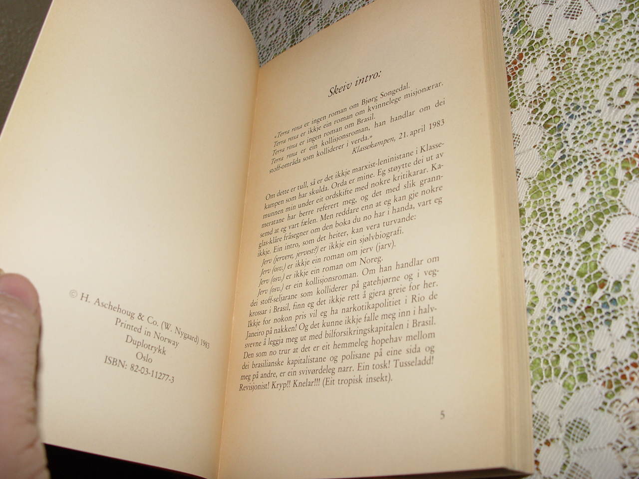 Publisher: Aschehoug, Oslo Norway 1983 Author: Jon Michelet ISBN 10: 8203112773 ISBN 13: 9788203112775 262 pages -- approx. size: 8" by 5" Jerv, Jervere, Jervest? : a Norwegian, and thus tragic, romance cycle Obviously hard to find as research shows very few listing if that.....Out of print book I'm not sure but wondering if this is a series of short stories. First seems to state Norwegian: Roman Doden i bunkeren English: Roman dead in the bunker Very good condition that appears like it wasn't read. Tight and intact. Paperback illustrated covers with a target and what looks to be a badger. Original price tag on back cover. Showing only slightly bumped corners and spine ends. Please see and enlarge all photos and email with any questions prior to purchase. Thanks for looking. |