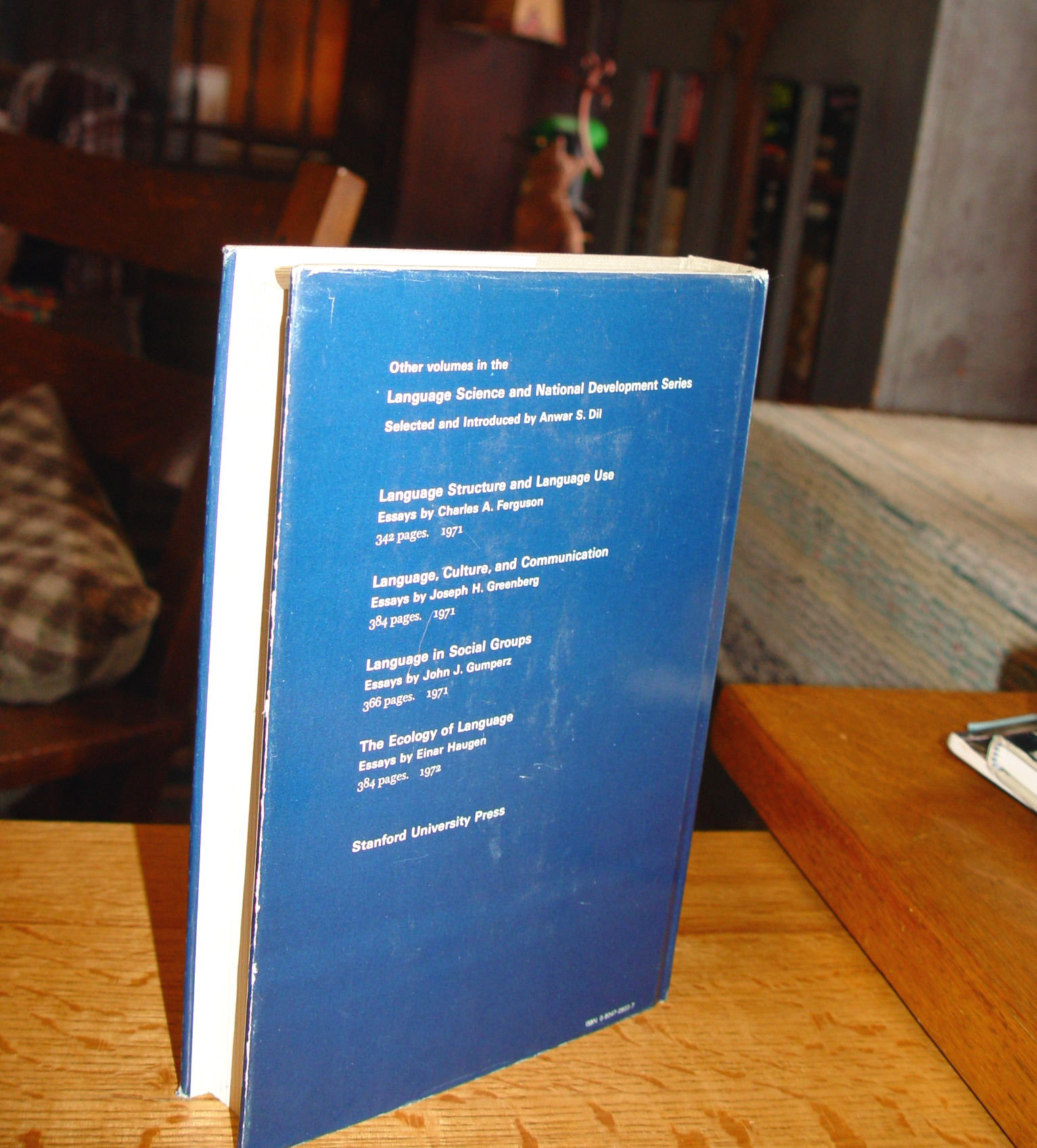 Publisher Stanford University Press, 1972 ISBN 0804708037 The personal and societal problems of bilingualism and biculturalism are analyzed by an authority in the field of psycho-linguistics. The book is a collection of papers by the author, spanning from the 50s to the 70s. The common theme is bilingualism. With a subtopic of how a person acquires a second language. There is even a discussion about a possible relationship between bilingualism and intelligence. For example, it discusses how maybe the learning of a second language helps the general thought process. No doubt people who speak several languages would like to think so. It does point out that knowing 2 languages helps a person separate an idea or thought from words. That the appreciation of another way to render that idea is intellectually liberating. Very good condition with underlining that is so fine I am not able to discern if it was the (professor's work, previous owner) or deliberate. I found a page with a small highlight. Really very nice with the previous owner's name front endpaper with very light penciling of three pages....must be important. Can be erased. Dust Jacket very nice with mild edgewear. Please see photos and email with questions. Please see and enlarge photos and email with any questions prior to purchase. Thanks |