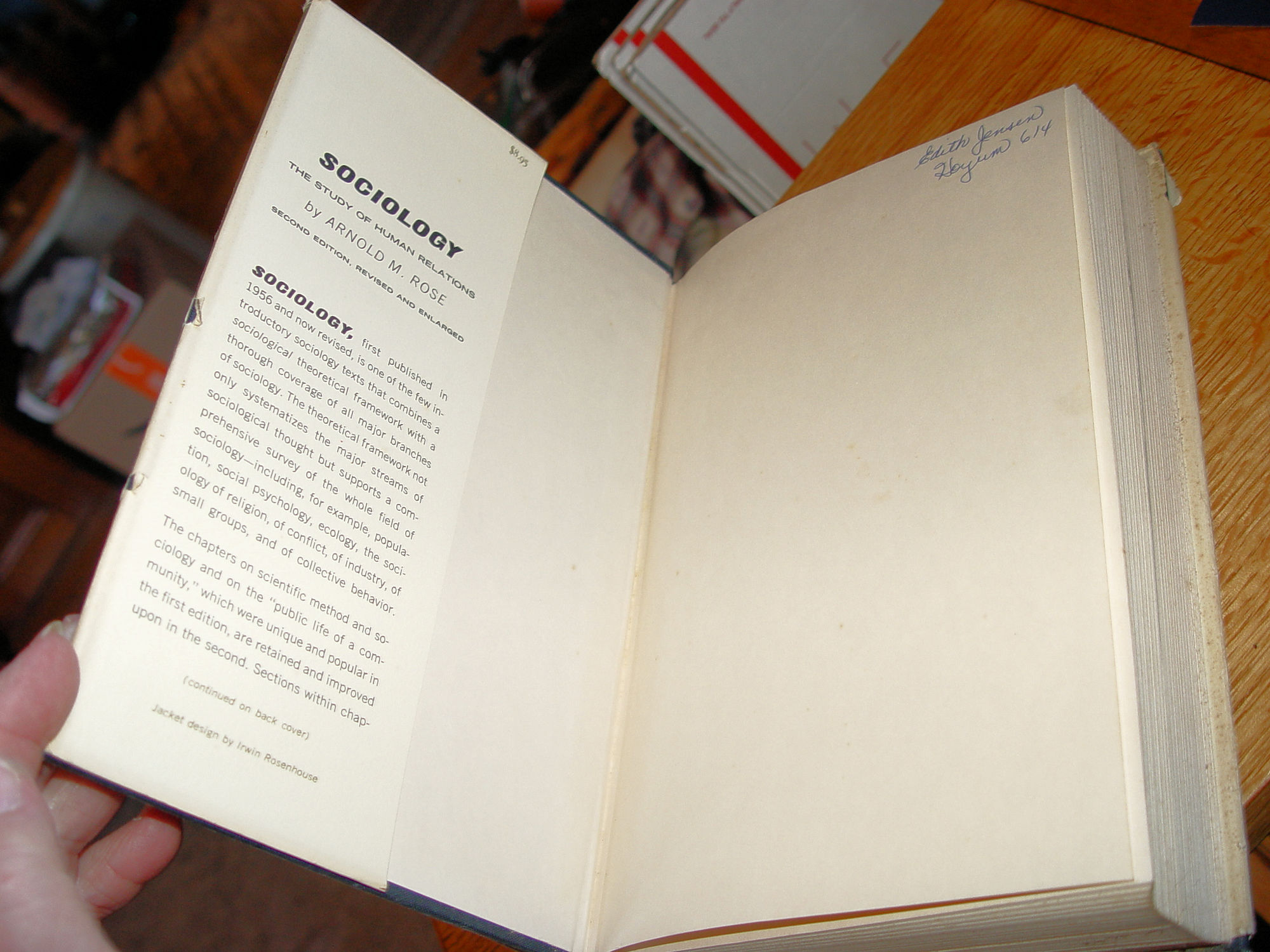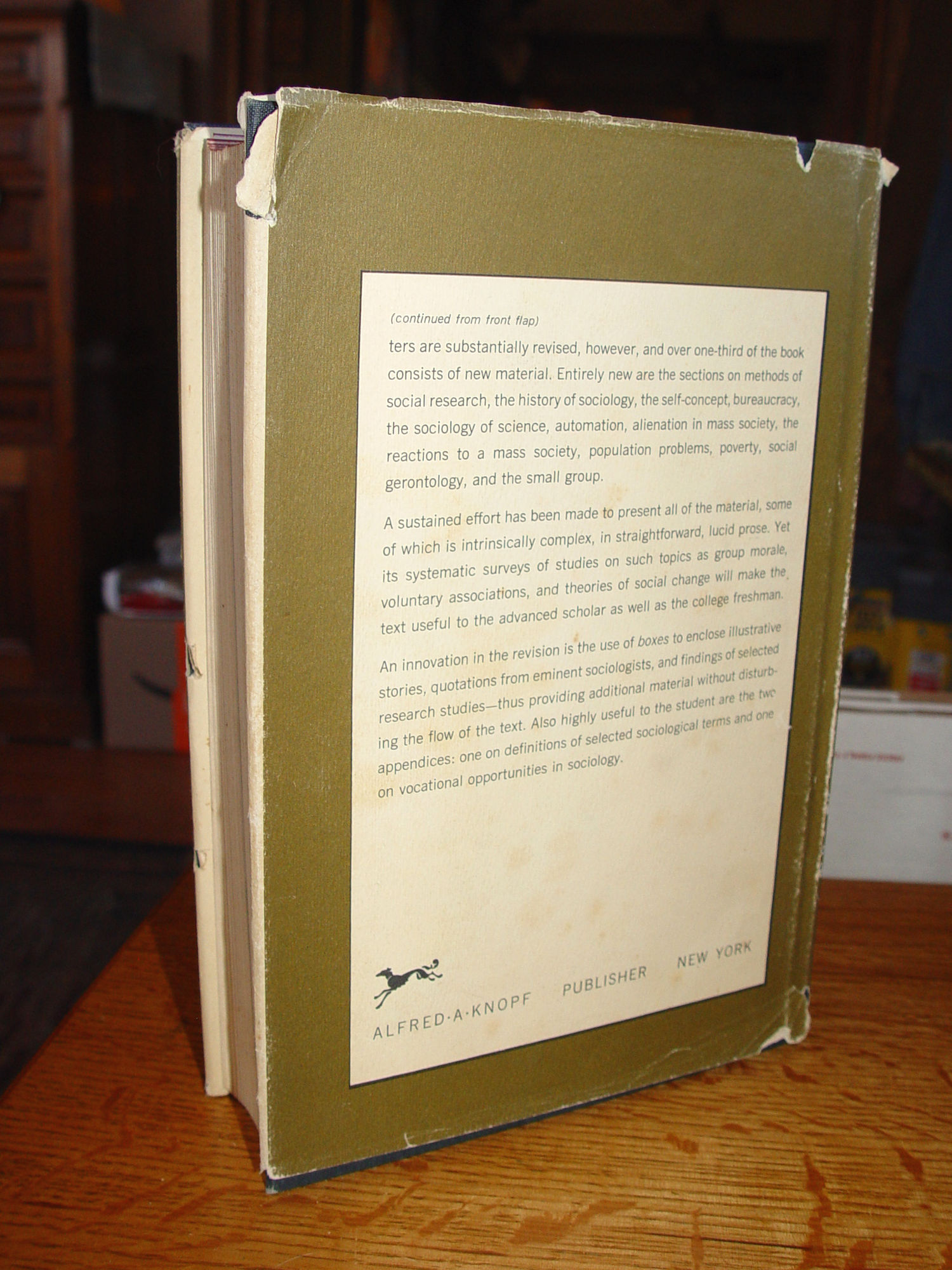 Publisher: Alfred A. Knopf 736 pages -- Approx. size: 9.5" by 6.25" by 1.75" Illustrated with photographs First published in 1956 and now revised, is one of the few introductory sociology texts that combines a sociological theoretical framework with a thorough coverage of all major branches of sociology. The theoretical framework not only systematizes the major streams of sociological thought byu supports a comprehensive survey of the whole fields of sociology - including, for example, population, social psychology, ecology, the sociology of religion, of conflict, of industry of small groups and of collective behavior (taken from front flap). Arnold M. Rose, who received his Ph.D. in 1946 from the University of Chicago, was Fulbright Fellow at the Centre d'Etudes Sociologues in Paris (1951-52) and at the University of Rome (1956-57). He has taught at Bennington College (1946-47), at Washington University (1947-49), and since 1949, at the University of Minnesota, where he is now Professor of Sicialogy. (From back flap) Good hardcover edition. As is dust jacket. Jacket shows minor edge wear. The book has a black cloth cover. Slightly bumped corners. Complete interior with photograph illustrated but is profusely highlighted. This belonged to a teacher's estate. And I believe a student before that as the only writing is her name and room number in ink front first page. See photos. Great reference material and hard to find book. Please see photos, enlarge and email with any questions you may have. Thanks for looking. |